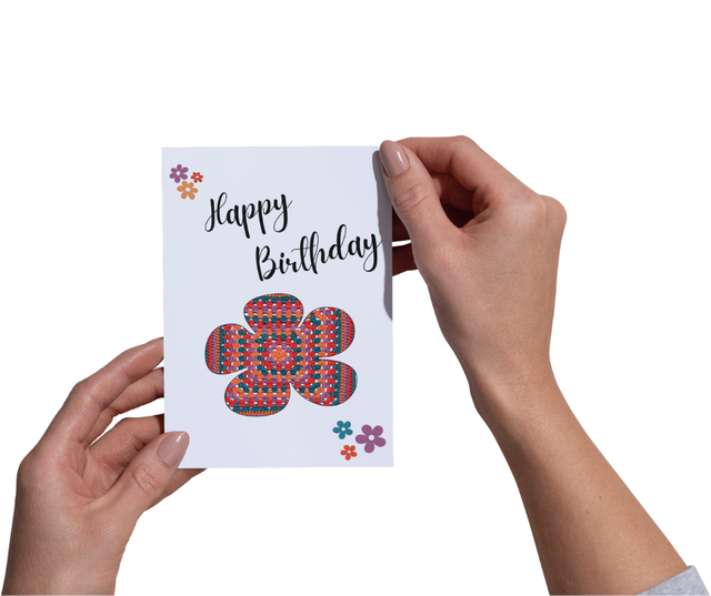 Birthday Card - A5 Printed Crochet Flowers