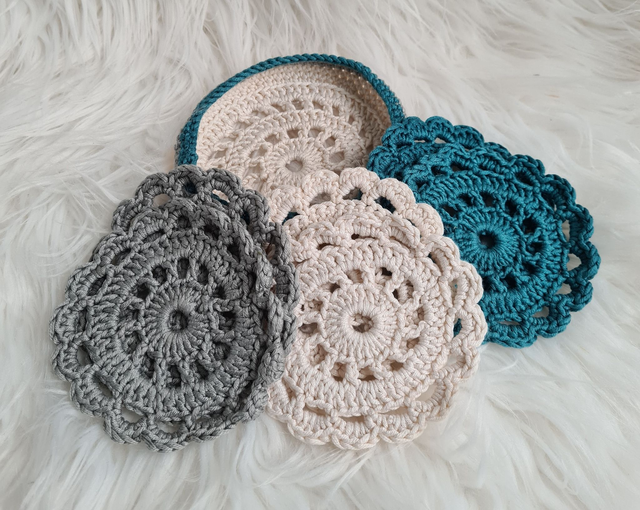 Crochet Coasters in Holder (Set of 6)