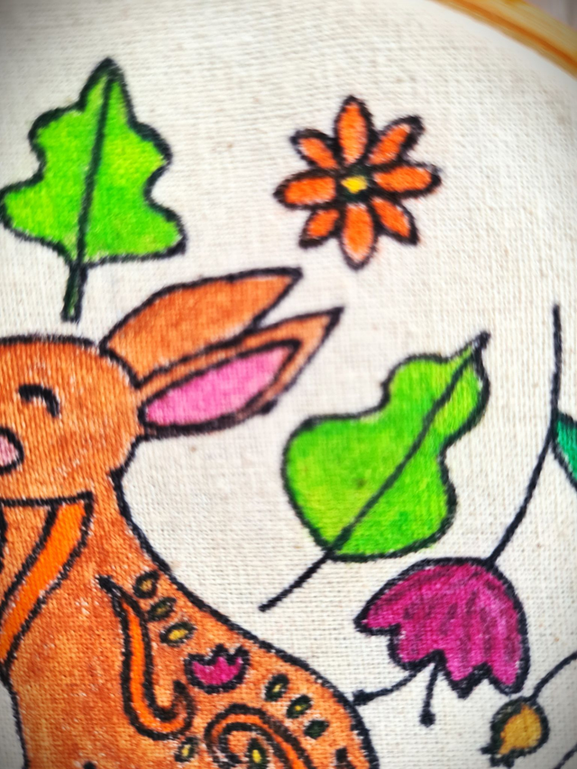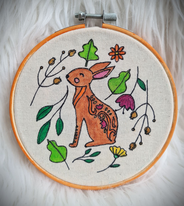 Pretty and hand drawn and painted heart using watercolour pencils and aloe vera gel, outlined in pen. Looks lovely either hung on a wall or propped up on a shelf. The orange hoop is hand painted using acrylic paints.